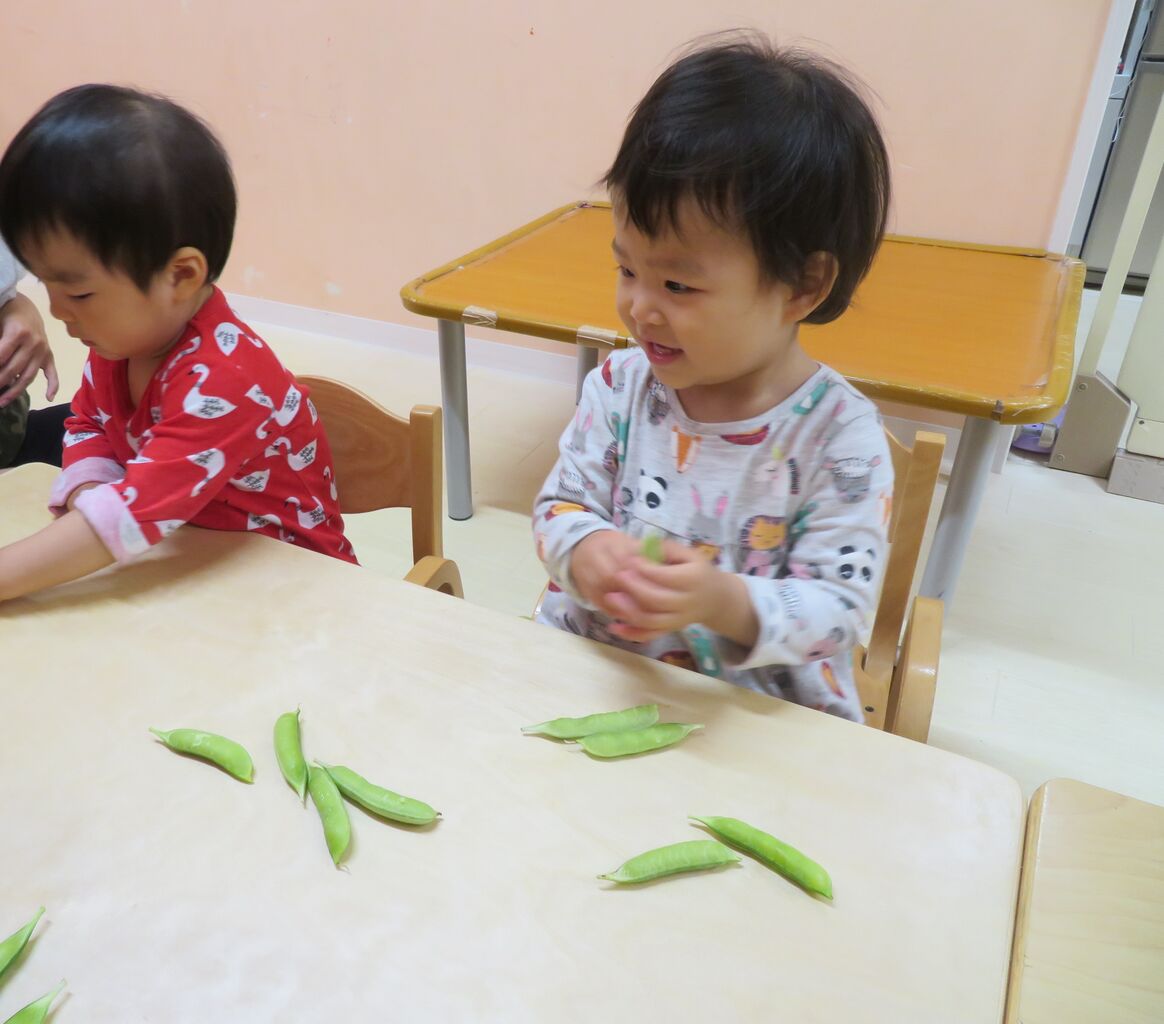 是非、お家でも「お豆むきむきしたの~?」と子どもたちに聞いてみてください