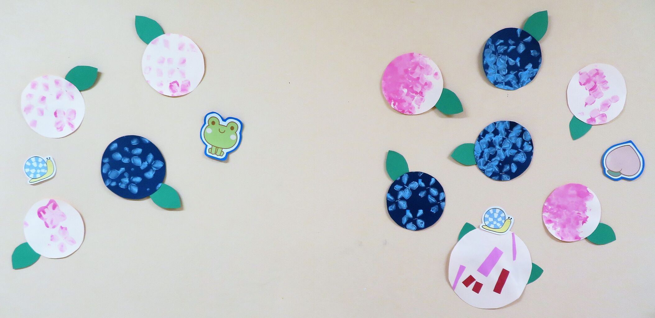 こちらは子どもたちが遊びを通してつくったあじさいです