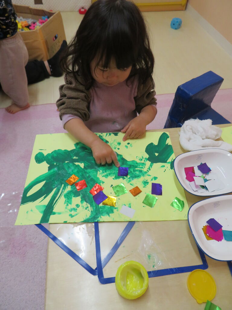 みんなのツリーを合体させて、1つの大きなクリスマスツリーに